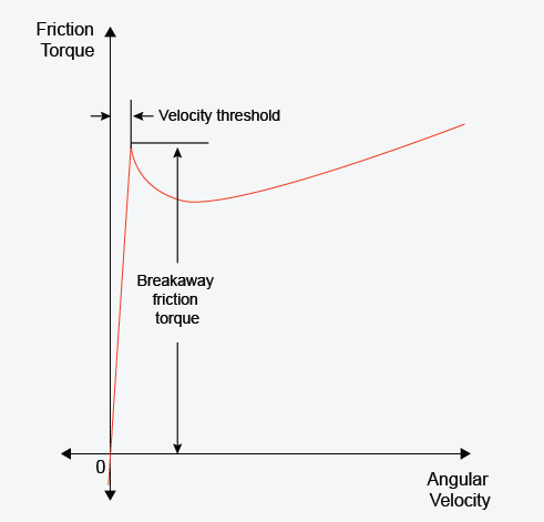 The angular velocity at which the Stribeck friction is at its peak. At this point, the sum of the Stribeck and Coulomb friction is the Breakaway friction torque. This parameter specifies the velocity threshold, which affects the tradeoff between the simulation accuracy and speed.