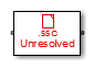![]() | Simscape Component block pointing to an unresolved component file. This can happen if the source component file got moved, or if it is no longer on the path. The Add button adds the folder to the path only for the duration of the current MATLAB session. If you do not save the path and then open the model in a subsequent session, the Simscape Component block becomes unresolved. If the source component is located in the current working directory, then there is no requirement for it to be on the path. However, if you later try to open the model from another directory, the Simscape Component block also becomes unresolved. |