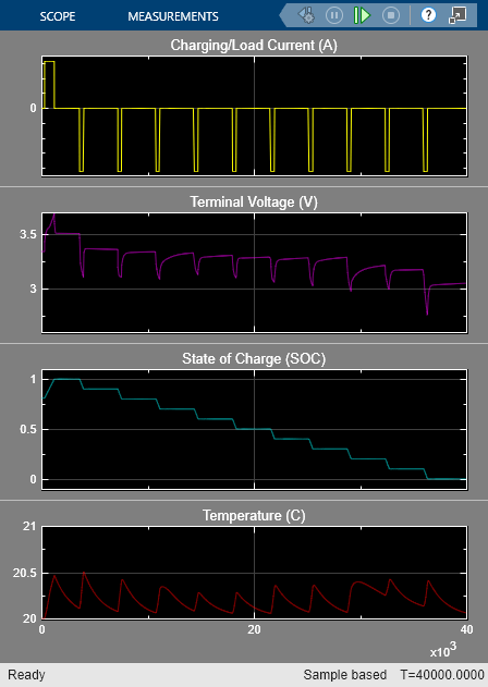 A simple thermal model is used to model battery temperature. It is assumed that cooling is primarily via convection, and that heating is primarily from internal resistance. A battery pack can be modeled by connecting multiple copies of the battery cell block in series.