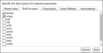 Built-in types — Specify one or more built-in Simulink data types, such as
