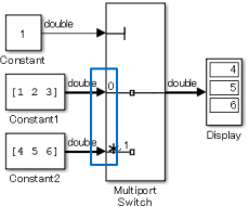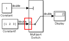 Specify indices, a value that inputs to the Multiport Switch block, other than the index specified for the control port, is treated the same as the last value of the specified index. As a result, an unintended data port can be selected.