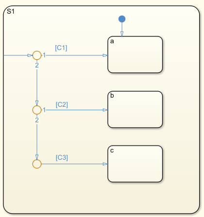 • The number of transition conditions is unclear when multiple internal transitions are used. By limiting the use of internal transitions to a single use, transitions are clearer and readability improves.