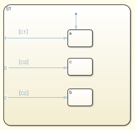 When multiple internal transitions are used in a single state, they shall be listed from top to bottom in the order of execution.