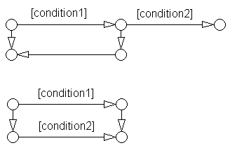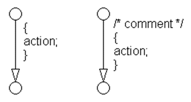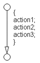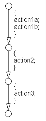 Two or more transition actions, multiline form (Two or more transition actions in one line are not allowed.) action1; action2; action3; |