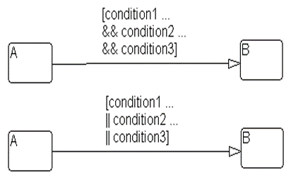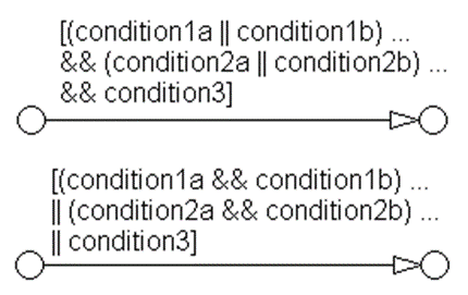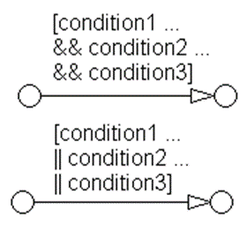 Two or more conditions, multiline form A subcondition is a set of logical operations, all of the same type, enclosed in parentheses. (The use of different operators in this form is not allowed, use sub conditions instead.) (condition1 ... && condition2 ... && condition3) (condition1 ... || condition2 ... || condition3) |