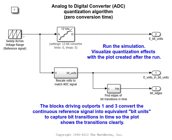 The sldemo_adc_quantize model allows you to explore the A/D converter component in more detail: