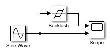For example, you can use the Backlash block to model the meshing of two gears. The input and output are both shafts with a gear on one end, and the input shaft drives the output shaft. Extra space between the gear teeth introduces play. The width of this spacing is the Deadband width parameter. If the system is disengaged initially, the Initial output parameter defines the output.