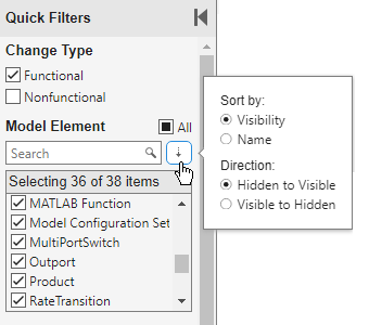 Simulink Editor — To compare a model that is open in the Simulink Editor to another model on disk, on the Modeling tab, in the Evaluate & Manage section, click Compare To.