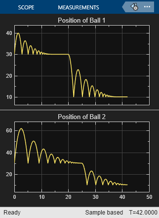 The Simulink® model in this example is used to simulate two bouncing balls. They start from the ground with different initial speeds, and their ground levels will change at different times.