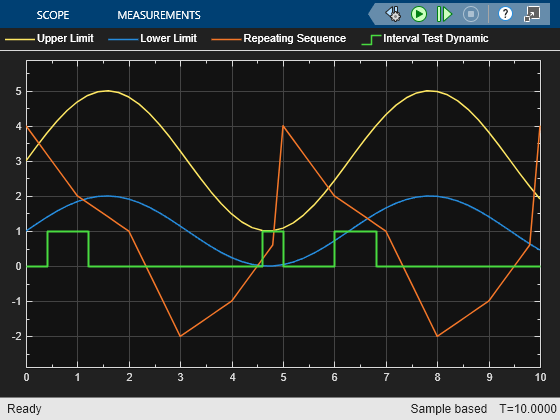 The Interval Test Dynamic block outputs true (1) if