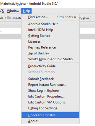 From your Android Studio application toolbar, select Help > Check for Updates.