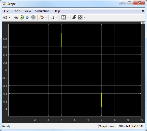 Sample basedand Sample time to1. Click OK.In the model, click Run.
