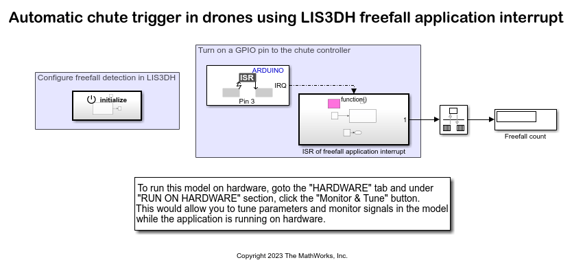 Open the arduino_LIS3DH_freefalldetection Simulink model.
