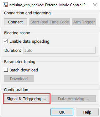 Signal Logging and Parameter Tuning in XCP External Mode with Packed Mode on Arduino