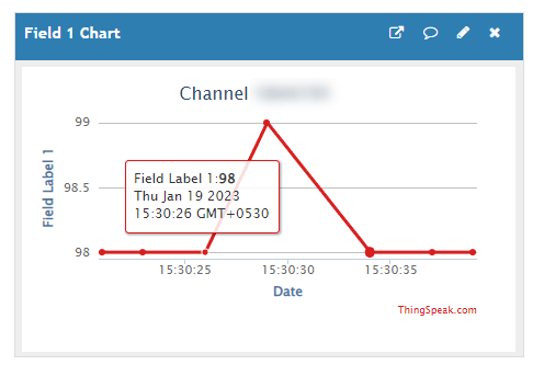 Observe the ADC data written on field 1 of the ThingSpeak channel on your Simulink model.