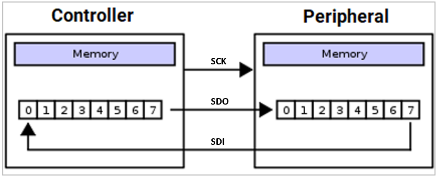 SDI (Serial Data In) – This line is the peripheral line for sending data to the SPI controller.