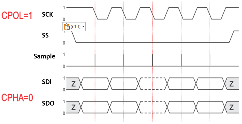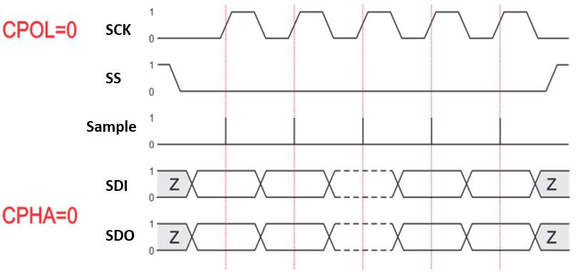 CPHA = 0 means sample at LEADING edge of SCK and CPHA = 1 means sample at TRAILING edge of SCK, regardless of whether the clock edge is RISING or FALLING.