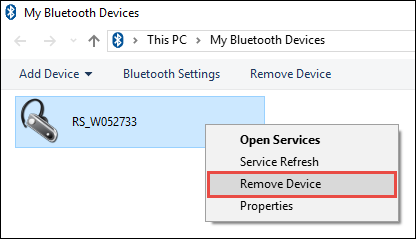 3. From the list of available devices, right-click the minidrone, and select Remove Device from the menu.