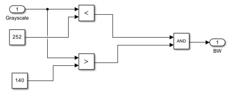 The Thresholder subsystem converts the grayscale image to binary image.