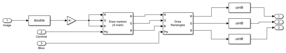 The Draw Markers subsystem in the Visualization area accepts three inputs.