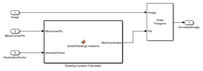 The Draw Annotations subsystem inserts a rectangle around the corner points of the bounding box.