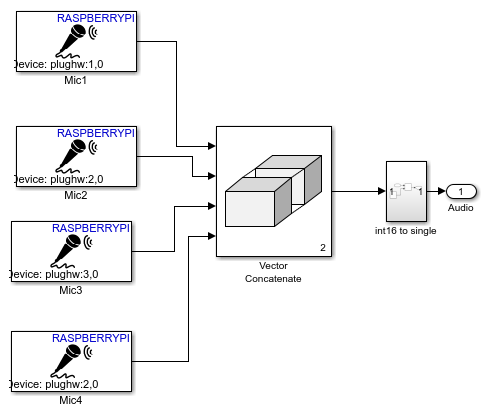 Open the raspberrypi_audio_directionOfArrival Simulink model.