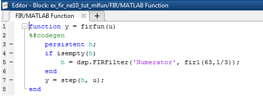 1. Open the MATLAB Function block within the FIR subsystem.