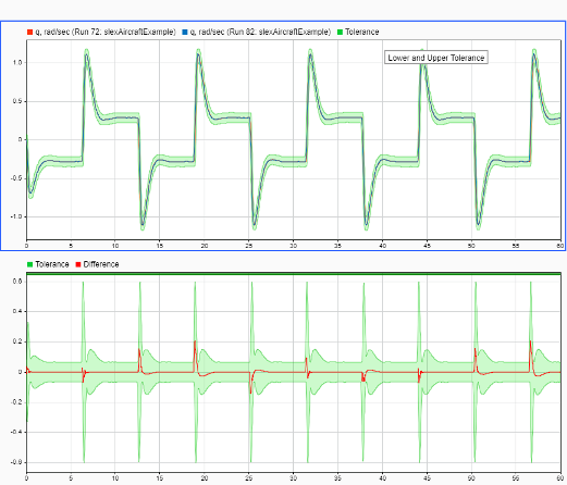 Use the Simulation Data Inspector to visualize and inspect logged signals in your model. You can also compare signals across simulations, or runs, using the Compare feature. For more information on using the Simulation Data Inspector, see Simulation Data Inspector. For more information on how to compare simulations using the Simulation Data Inspector, see Compare Simulation Data.