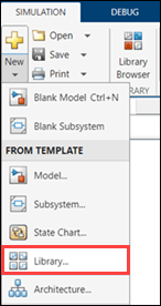 In the Simulink Toolstrip, on the Simulation tab, select New and click Library.