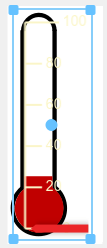 Resize the scale so it fits inside the white column of the thermometer background image. You can adjust the width and height of the scale interactively on the block or by using the Design tab. When resizing interactively, you can maintain the aspect ratio of the scale by pressing Shift as you drag the corners of the block. To use the Design tab, in the Size and Position section, adjust the Width and Height.