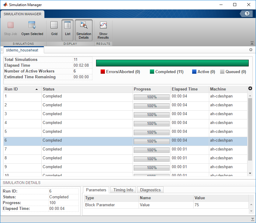 parsim. To monitor and analyze the runs, open the Simulation Manager by