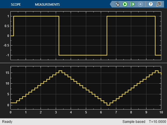 The MATLAB function adds the value (1 or -1) determined by the active state to the persistent variable n at each time step.