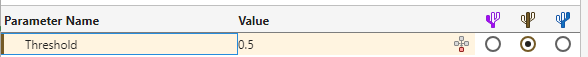 1. The tool selects the Switch row. In the Target pane, in the details table, the tool marks Threshold as a conflict . This icon means that the tool can perform the change. The tool provides option buttons next to the item.