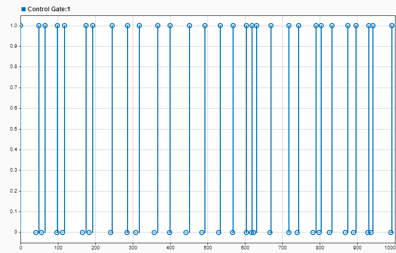 To control the Gate block, you can use the SimEvents Entity Generator block, which is labeled Control Gate in this example, to generate entities carrying different data values.