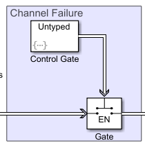A SimEvents Entity Gate block is used to model channel failure. The block has two input ports. One input port is for incoming messages from Transmission Buffer. The second input port is a control port to decide when to open the gate.