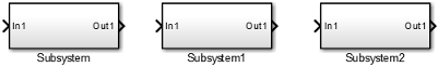 Add Subsystem blocks. Drag three Subsystem blocks from the Ports & Subsystems library to the new model in the Simulink Editor.