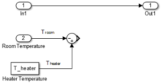 Inside Temperature. Rename the second Inport block toOutside Temperature.Add an Outport block and connect it to the first Inport block (Inside Temperature). The Outport blocks are needed for saving (logging) the signals. Set Port number to