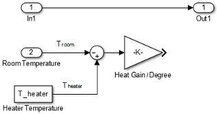 Add a Gain block to the Heater subsystem. Set the Gain parameter to