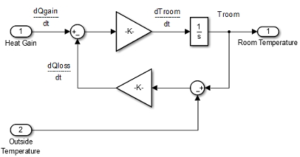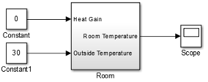 Add Outport blocks to connect the outside temperature and room temperature to a larger model or to visualize results.