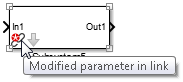 To identify a parameterized link, use these identifications on the link badge of the linked subsystem block: