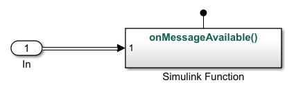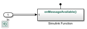When the Simulink Function block is activated, it accepts a message and converts it to a signal.