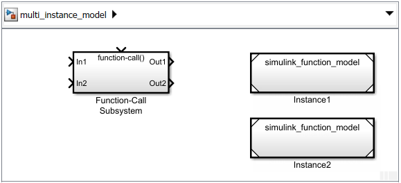 For a model using Simulink Function blocks with multiple instances, see Reuse Multiple Instances of a Simulink Function.