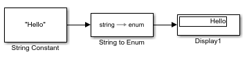 Simulink provides the String To Enum block to convert a string to the corresponding enumeration value. In this model, header string "RMB" is converted to NMEASentence.RMB.