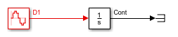 The discrete Sine Wave block outputs a 1 rad/s sine wave with a discrete sample time ts = 2.