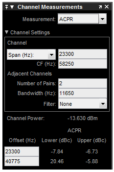 ACPRas the Measurement type.Lower (dBc) — The power ratio of the lower sideband to the main channel. This setting is available only if you select