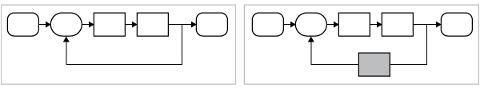 | Models that are mostly similar but have slight variations, such as in cases where you want to separate a test model from a debugging model. The test model on the left has a fixed design. On the right, the same test model includes a variant that is introduced for debugging purposes. |