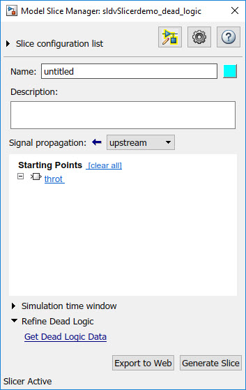 2. In the Model Slice Manager, select Refine Dead Logic.