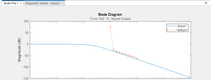 estsys1appears in the Linear Analysis Workspace.Compare the estimated model and the linearized model.