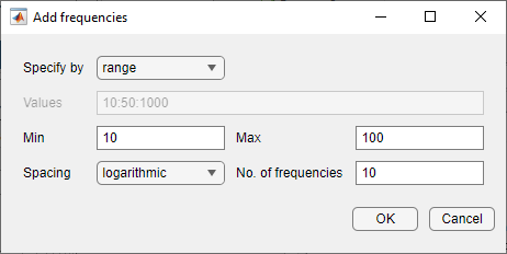 Open the Add frequencies dialog box.