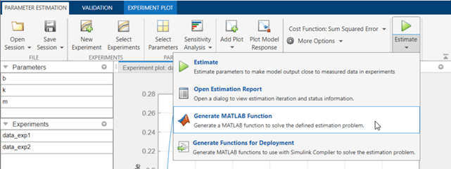 Generate MATLAB Code for Parameter Estimation Problems (GUI)